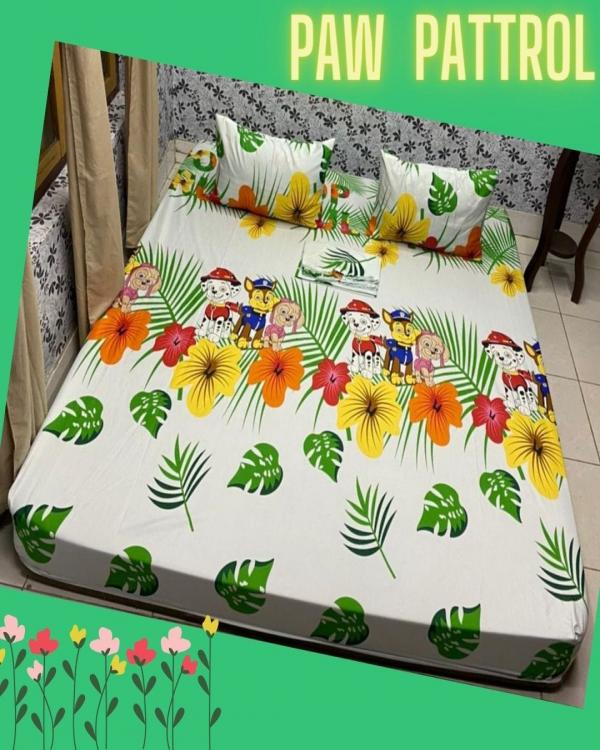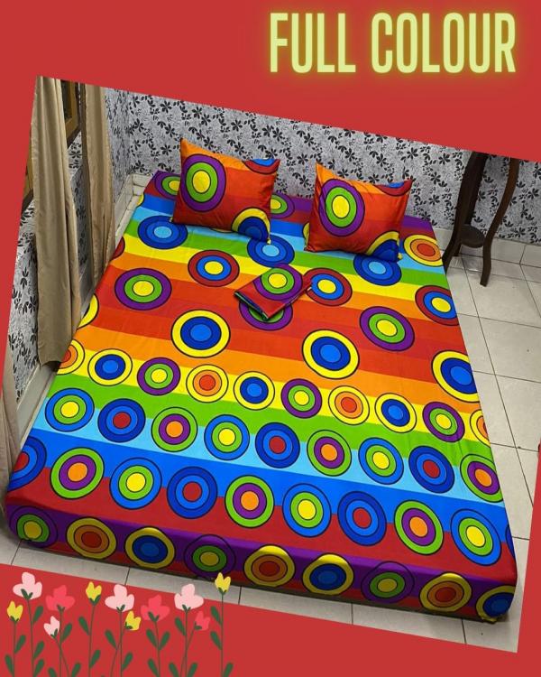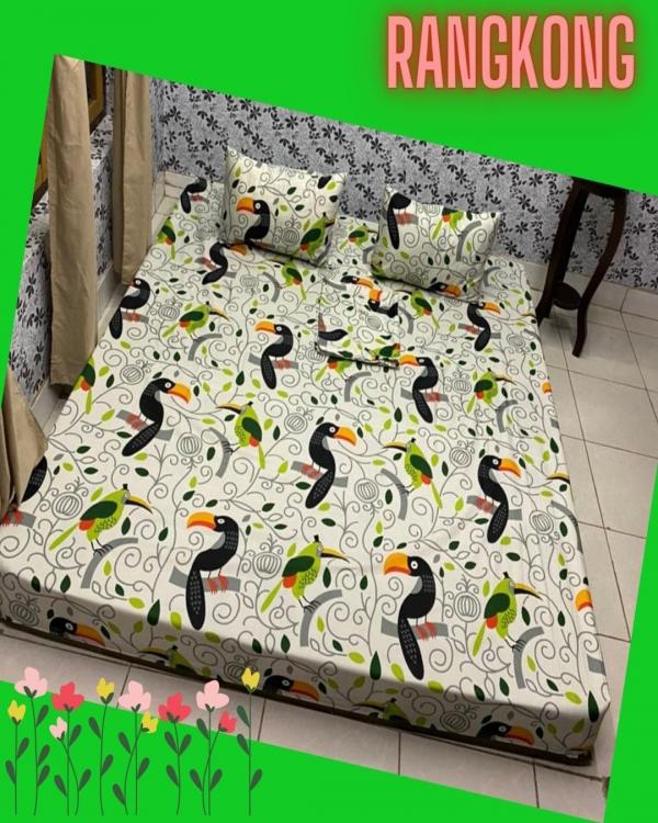 Size 180x200x20, ada karet disetiap pojoknyabahan katun DISPERSEgaransi kalo luntur barang diganti
